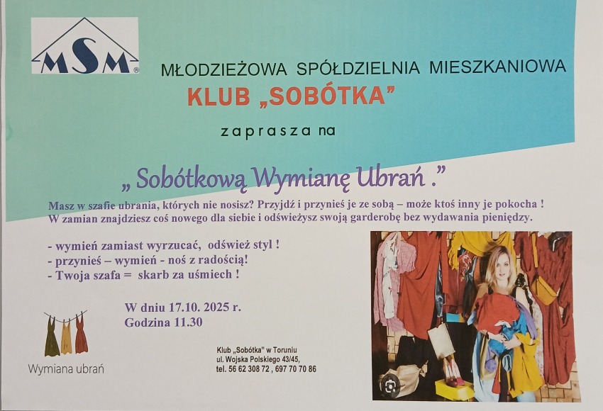 Klub " Sobótka" zaprasza na " Sobótkową wymianę ubrań"